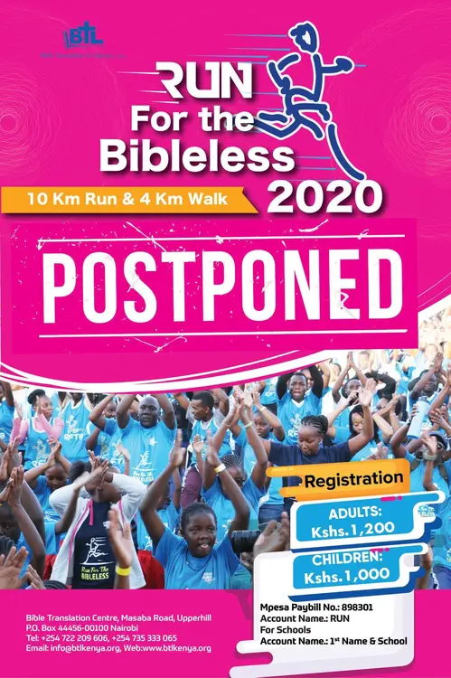 The BTL Board and Management wish to say thank you to all who supported the cause of the Run for the Bibleless; following the Government directive on Coronavirus outbreak with a confirmed case in the country, Run for the Bibleless 2020 has been postponed. The resources that have been raised towards this fundraising will be put into the work of Bible translation.